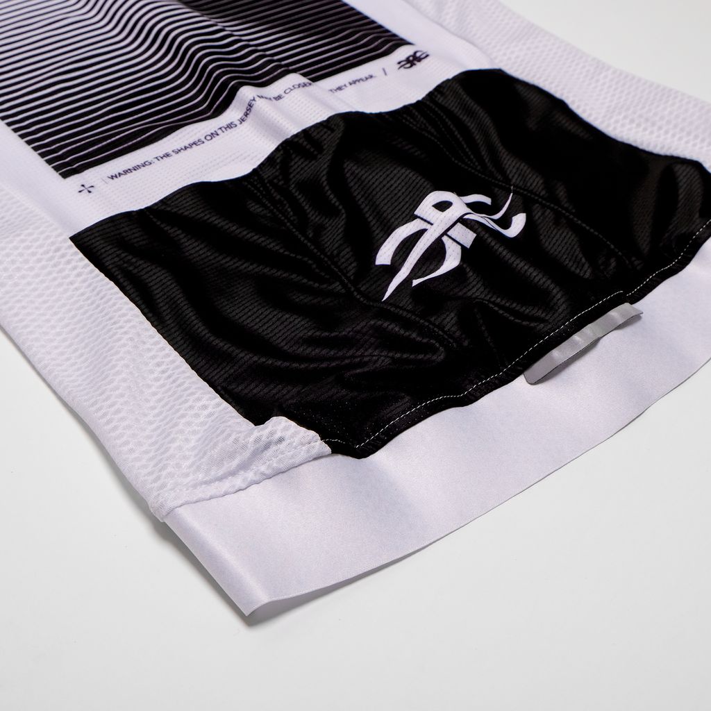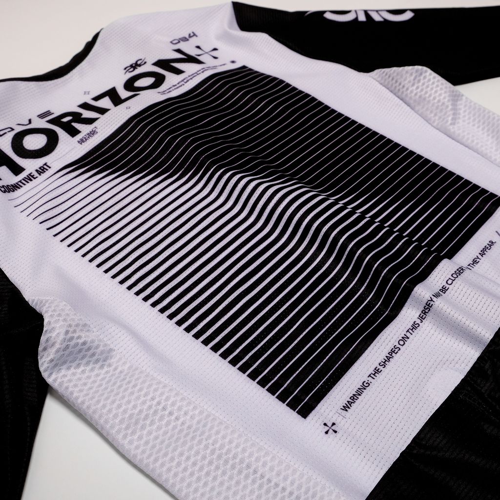 Sky-Inspired theme: Contrasting horizontal lines graphic on the front and back with an optical illusion diagonal line, symbolizing the road ahead and the altitude you chase with every climb.