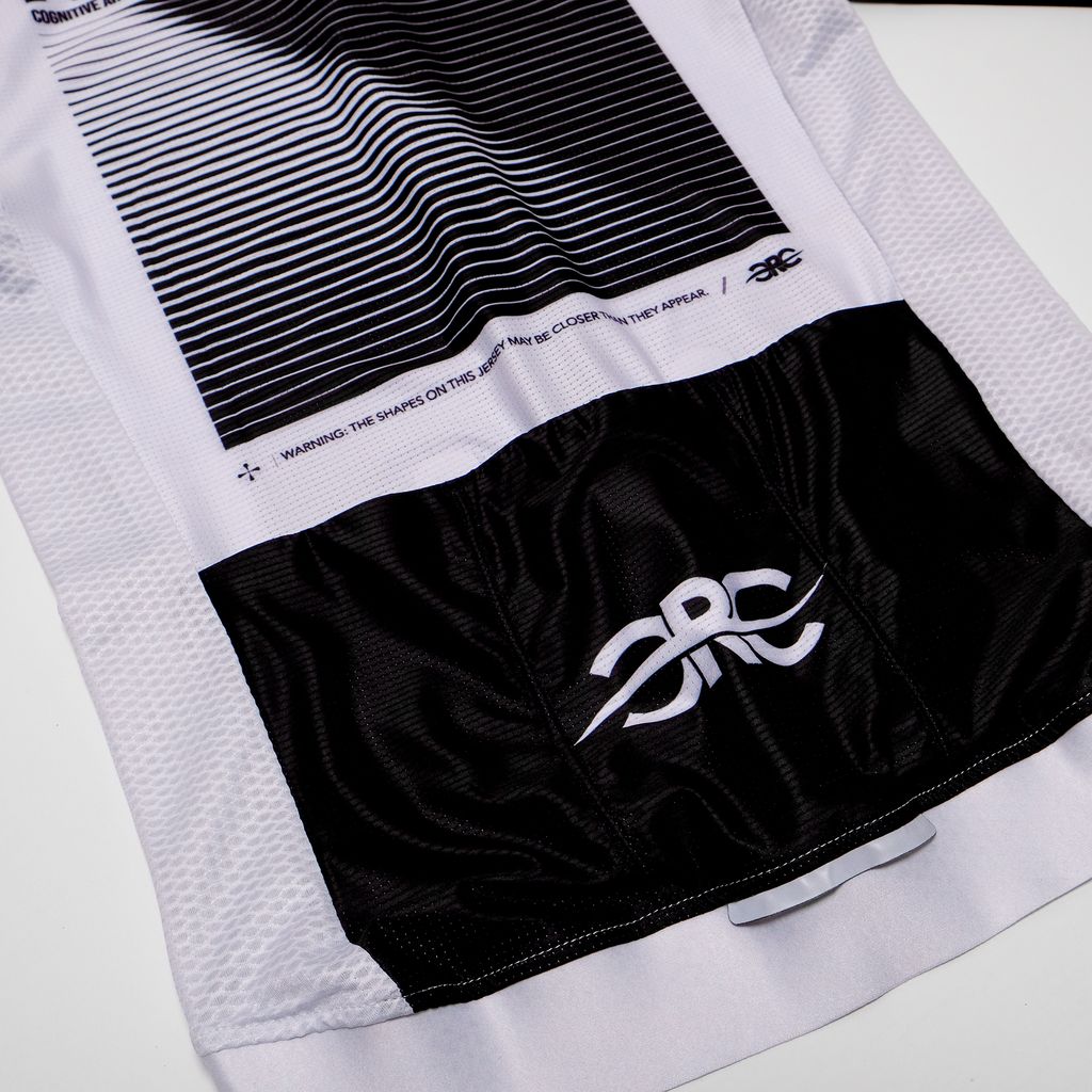 Graphics: The sleeves have contrasting white CRC logos. Upper chest and upper back has our Above Horizon theme.